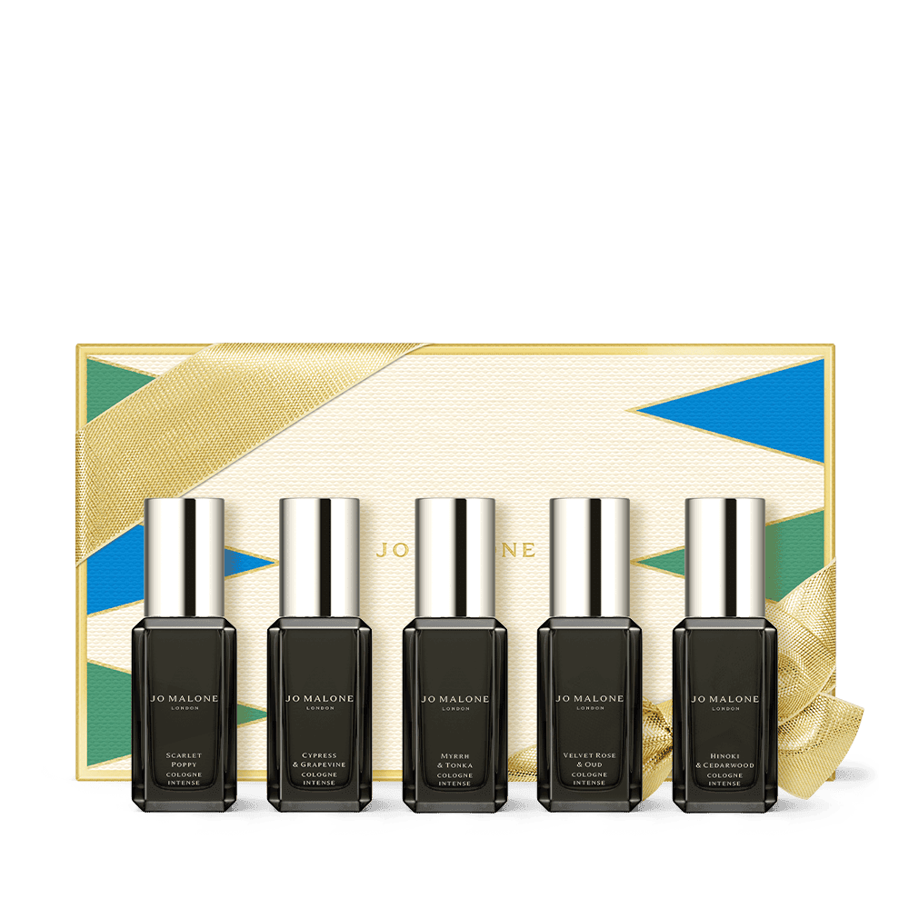 Introduce them to the rich, mysterious world of Cologne Intense with five scents in 9ml bottles. The decorative festive gift box contains sensuous Myrrh & Tonka, decadent Velvet Rose & Oud and three other fragrances inspired by faraway lands, captivating rituals and treasured ingredients.